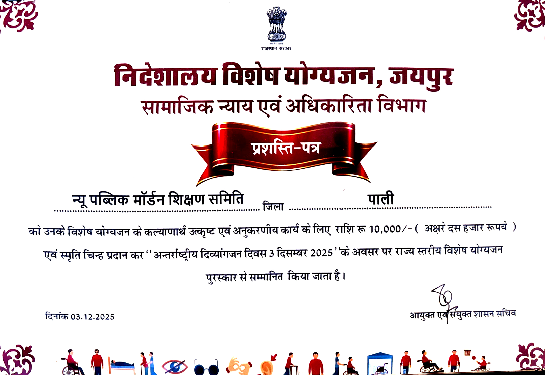 Apni Duniya is a non profit organisation in Pali, bringing education for specially abled children who are mentally devoid. Since the inception of our secondary school, New Public Modern Teaching Committee in Pali in 1994, we are dedicated to serve the children with free education and activities, awareness of rural poor women, environmental awareness and welfare for elderly people. We have been actively working to improve social and educational conditions for more than 20 years. We work for a host of causes ranging from child welfare and education to disability, and women’s empowerment and many others. Apni Duniya also organise several camps on literacy, sports, social causes such as female feticide, tobacco prohibition, aids awareness, polio campaign.